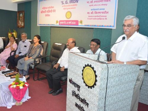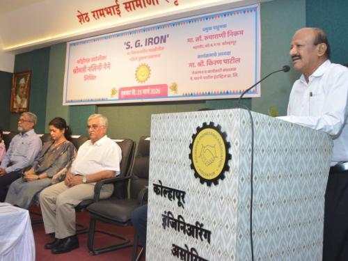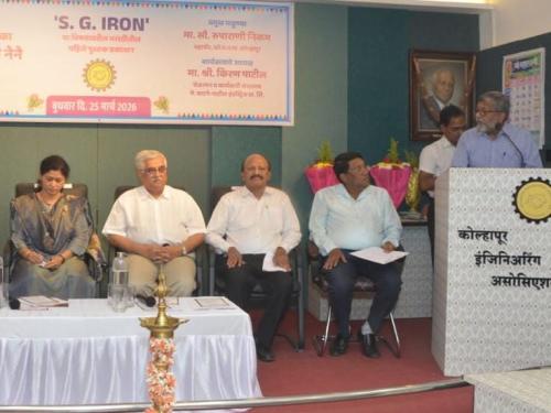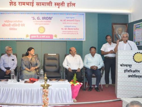 पुस्तक प्रसिध्द करताना तसेच मराठी भाषेतील तांत्रिक शब्दांची माहिती व मनोगत नितीन वाडीकर यांनी करून दिली. लेखिका नेने मॅडम यांनी मनोगतामध्ये सांगितले की, मागील पुस्तकातून हे पुस्तक लिहिण्याची प्रेरणा मिळाली. कोल्हापूर इंजिनिअरिंग असोसिएशला विनंती केली असोसिएशन तर्फे हे पुस्तक प्रकाशित करावे आणि त्यांनी साथ दिली याबद्दल आभार व्यक्त केले. पुस्तक प्रकाशित करण्यामध्ये महत्वाची भूमिका पारपाडल्याबद्दल उद्यमवार्ताचे मुख्यसंपादक नितीन वाडीकर व पीआरओ प्रशांत मोरे यांचा अनुक्रमे महापौर निकम आणि कार्यकमाचे अध्यक्ष किरण पाटील यांच्याहस्ते पुष्पगुच्छ देवून सत्कार करण्यात आला. पुस्तकाबद्दलची माहिती व प्रास्ताविक अध्यक्ष कमलाकांत कुलकर्णी यांनी केले प्रास्ताविकात संस्थेच्या गेल्या 79 वर्षात अनेक दिग्गज व नामंवत उद्योजकांनी भेटी दिल्याचे सांगितले, त्याच बरोबर असोसिएशनचे कार्य व ओळखही करून दिली. त्याचबरोबर असोसिएशनने यापुर्वी उद्योजकांची माहिती असलेली डिरेक्टरी प्रसिध्द करून उद्योजकांना मार्गदर्शन केले असून आता यापुस्तक रूपाने उद्योजकांना,सुपरवायझरना व कर्मचा-यांना एस.जी.आयर्नची माहीती होण्यासाठी हे पुस्तक असोसिएशन तर्फे प्रसिध्द करण्यात आल्याची माहिती त्यांनी दिली. नेने मॅडम यांनी पुर्वी लिहीलेल्या पुस्तकाचा त्यांना दैनंदिन औद्योगिक उत्पादने करताना झाला असेही ते म्हणाले. प्रमुख पाहुण्या महापौर रूपाराणी निकम आणि कार्यक्रमाचे अध्यक्ष किरण पाटील यांची ओळख उपाध्यक्ष श्रीकांत दुधाणे यांनी करून दिली. आभार प्रदर्शन टे्झरर प्रसन्न तेरदाळकर यांनी केले. सूत्रसंचालन सेक्रेटरी प्रदीप व्हरांबळे यांनी केले.
