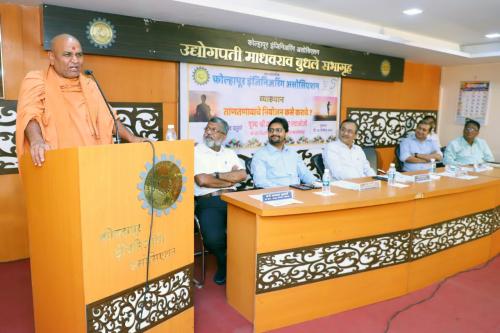 यथनांतर उपस्थर्तथांनी नवचथरलेल्यथ प्रश्थांनथ स्वथमीजीांनी उत्तरे नदली. व्यथख्यथनथच्यथ सुरवथतीस स्वथमीजीांनी असोनसएशनच्यथ थर्थपनेबथबत गौरव उद्गथर कथढले आनण म्हणथले स्वथतांत्रपुवा कथळथत समथजथची गरज होती आनण ती असोनसएशने पुणा केली. तीन नपढयथांनी उद्योग क्षेत्रथत अनतशय उत्तम कथमनगरी केली. व्यक्तीगत नवकथसथ बरोबरच रथष्टथा्चथही नवकथस सथधण्यथस त्यथांनी हथतभथर लथवलथ आहे. अश्यथ पररस्थर्तीत असोनसएशने केलेले कथया ही अनभमथनथची गोष्ट आहे.