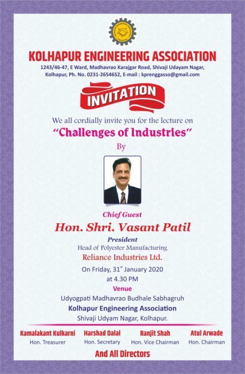 ‘‘भारतीय अर्थव्यवस्थेची वाढ कमी झाली आहे. विकासाचा वेग 9.4 वरून 5.5 वर आला आहे, बॅंकाचे एनपीए मध्ये वाढ झाली आहे, त्यामुळे परिस्थिती चिंताजनक आहे. त्यामुळे 5 ट्लिीयनला अर्थव्यवस्था जाणे तेवढे सोप नाही असा रिपोर्ट आहे. असे असलेतरी सर्वच परिस्थिती खराब आहे असे नाही असे श्री.पाटील यांनी प्रतिपादन केले. कोल्हापूर इंजिनिअरिंग असोसिएशने ‘‘सध्याची भारतीय अर्थव्यवस्था आणि उद्योगांपुढील आव्हाने’’ याविषयावर आयोजित केलेल्या व्याख्यानात ते बोलत होते. ते पुढे म्हणाले.सन 2020 हया वर्षात नक्कीच परिस्थती सुधारेल व उद्योगांना उभारि मिळले. सरकारी धोरणे व योजना तसेच गेल्या आठ महिन्यात भारतात 64 बिलीयन डाॅलरची झालेली गंुतवणूक यामुळे हळुहळु पैसा येत आहे त्यामुळे आशा वाढल्या आहेत. यामुळे सरकारी तुट कमी होवून जीडीपी 3.2 पेक्षा जास्तच राहील. सरकारी खर्चामध्ये कपात होईल व रिझव्र्ह बॅंक रेट कमी करेल अशी आपेक्षा आहे.