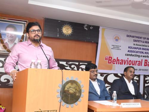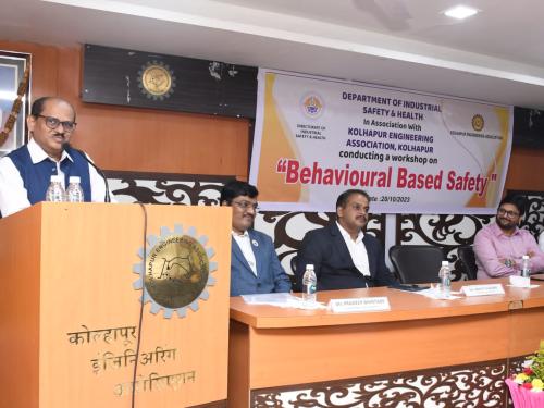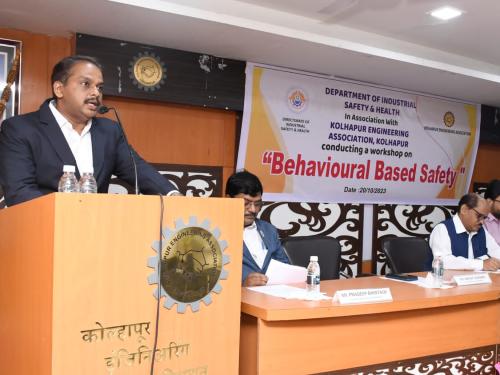 कारखान्यात काम करित असताना सुरक्षा ही सर्वाेच्च काम मानून मी सुरक्षित व माझा सहकारी सुरक्षित या भावानाने काम करा व सुरक्षा पाळा असे प्रतिपादन श्री.देवीदास गोरे -संचालक, औद्योगिक सुरक्षा आणि आरोग्य संचलनालय, मंुबई यांनी केले. ते वर्तन आधारित सुरक्षा या विषयावर आयोजित केलेल्या प्रशिक्षिण व चर्चासत्रात बोलत होते. हा कार्यक्रम सहसंचालक औद्योगिक सुरक्षा आणि आरोग्य संचालनालय ,कोल्हापूर आणि कोल्हापूर इंजिनिअरिंग असोसिएशन यांचे संयुक्त विद्यमाने आयोजित केला होता.